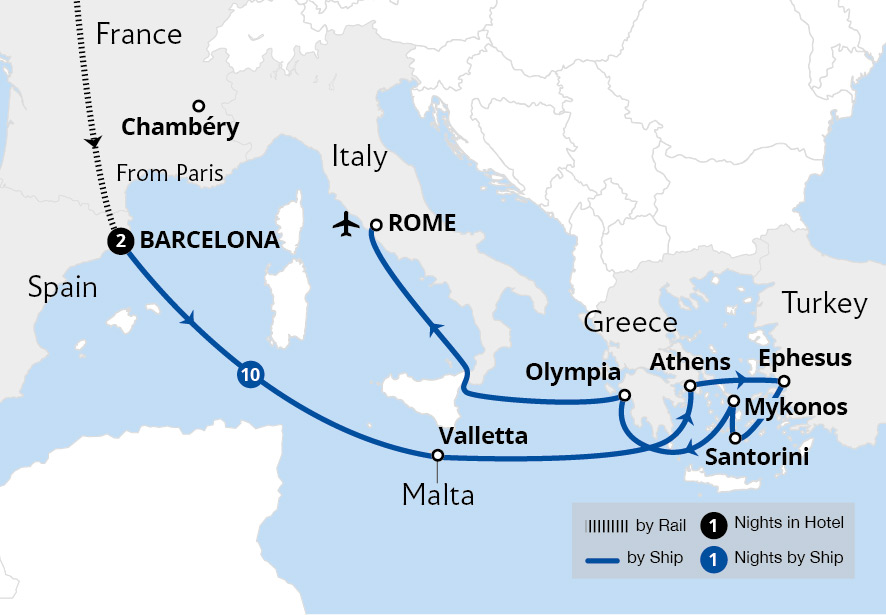Embrace the spirit of exploration on an island-hopping journey which takes in the beauty, culture and immense history of the entrancing eastern Mediterranean. Journey by train to Barcelona for a tour of the city, before cruising the Mediterranean on the luxurious Celebrity Equinox to medieval Valletta on Malta. Encounter the iconic...
