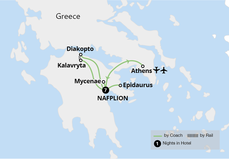 Embark on a journey into ancient Greece, exploring key archaeological sites of the Peloponnese from our hotel in the beautiful Venetian city of Nafplion - known for its three castles and a heritage which spans the Byzantine, Ottoman and Venetian periods. Enjoy a day trip to timeless Athens, touring the iconic Acropolis and its stunning...
