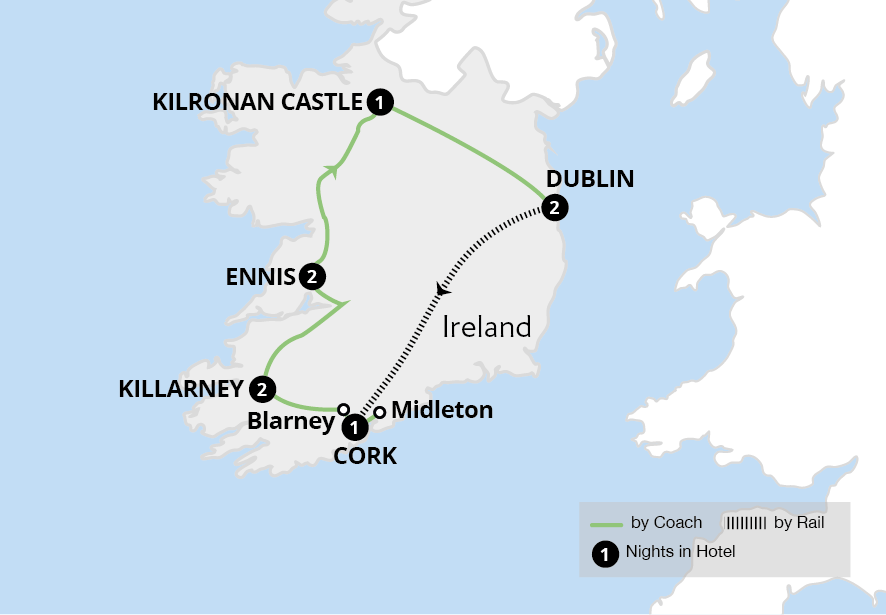 Boasting rugged coastlines, rolling hills, dramatic castles and a culture rich in mythology; the Emerald Isle is as beautiful as it is fascinating. Travel around this captivating country, seeing the iconic Blarney Stone and admiring the natural beauty of the Ring of Kerry and dramatic Cliffs of Moher. Enjoy the scenery during trips in a ...