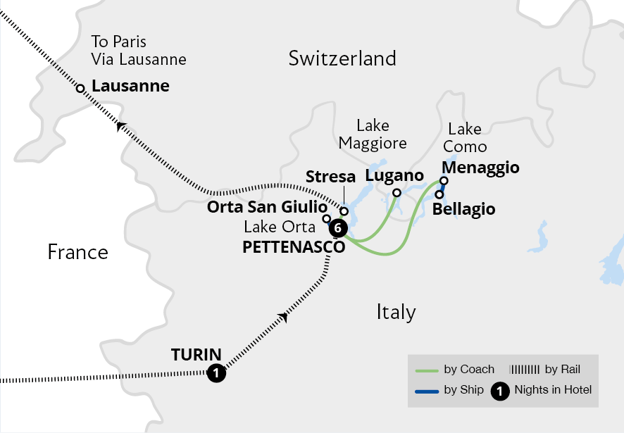Soak up the beauty, serenity and relaxed ambience of three of Italy's glorious lakes. Staying in a hotel on the peaceful shores of Lake Orta, quieter than its famed neighbours, we explore Como's lakeside towns of Bellagio and Menaggio during a cruise. Visiting Lake Maggiore, Italy's second largest lake, become immersed in the artistic history...