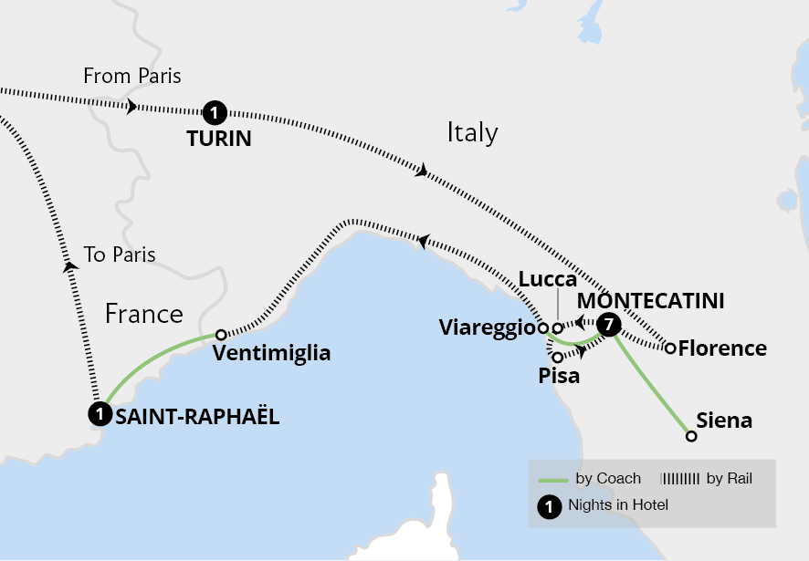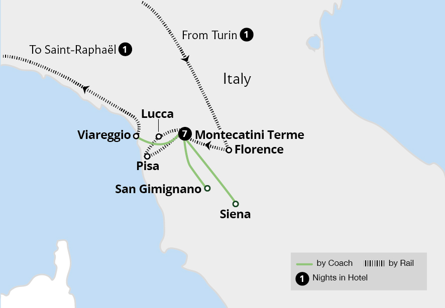 Enjoy a holiday that captures the essence of Tuscany, travelling to and from the Tuscan spa town of Montecatini Terme by rail. This UNESCO World Heritage site is an ideal base for exploring this scenic and cultural region. From the grand Renaissance art and architecture of Florence to the fantastic shell-shaped Piazza del Campo and medieval...