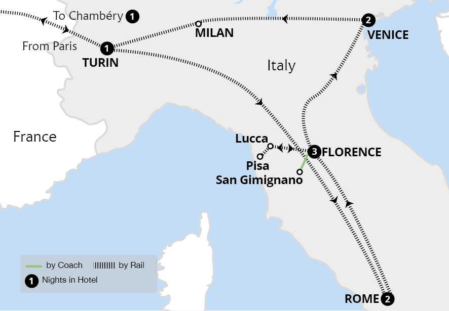 Join us on a tour of six of Italy's great historic cities, encountering a wealth of artistic and cultural treasures including World Heritage sites, with guided tours of ancient Rome and the world's Renaissance capital, Florence. With day trips to the walled Tuscan city of Lucca, Pisa's iconic tower and its gleaming white Duomo, we take a...