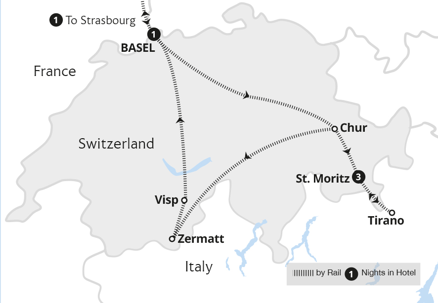 Staggering mountain peaks and serene alpine lakes provide the extraordinary setting for this holiday as we travel in First Class all the way, including on the iconic Bernina Express and Glacier Express. Staying in the Engadine Valley and the popular mountain resort of Zermatt provides idyllic bases from which to explore the Swiss Alps by rail. ...