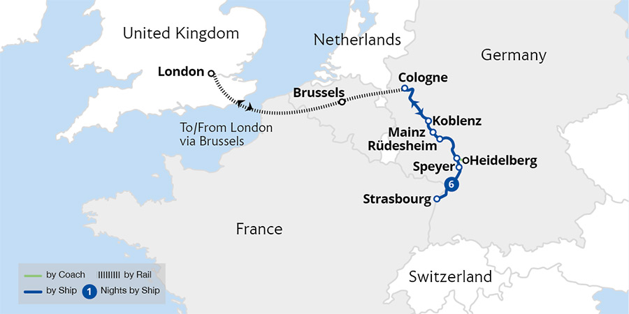 • Explore the markets of Rüdesheim, Heidelberg, Speyer, and Strasbourg