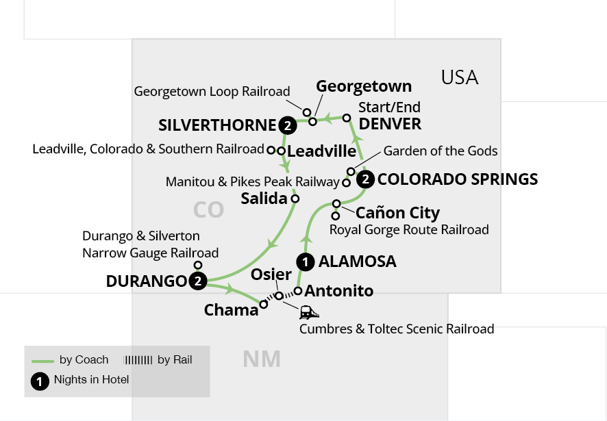 Journey through untamed Colorado on this amazing Rocky Mountain expedition. With 20 years' experience in North America, travel with the experts to enjoy six of the state's most scenic heritage railways. Uncover stunning landscapes from the heights of Pikes Peak and the depths of Royal Gorge, as well as Colorado's fascinating history. Delve into...