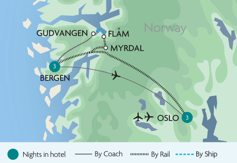 Uncover elegant Oslo and the charming port of Bergen on guided tours of Norway's two largest cities. Encounter jaw-dropping landscapes on a train journey along the Bergen Railway, basking in the beauty of this gorgeous country's natural wonders as they roll by your window. Stop to view amazing waterfalls as you travel on the Flåm Railway, one of...