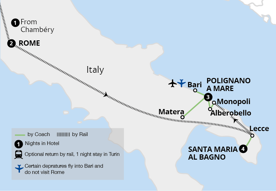 Enjoy stays in two scenic bases, both perfectly located for relaxing and uncovering this unspoilt region of Italy. Travel by First Class rail to admire the iconic sites of ancient Rome before exploring the unique dwellings and UNESCO World Heritage sites of Puglia and Basilicata. Marvel at the otherworldly sassi caves of cliffside Matera and...