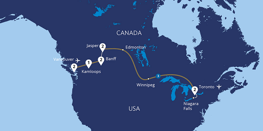 This spectacular overland adventure showcases the beautiful and varied landscapes the world's second-largest country is famed for. Landing in Vancouver, we explore the west coast's jaw-dropping Rocky Mountains, rushing rivers, glacial lakes and pristine forests before boarding VIA Rail's Canadian for a three-night journey across the plains...