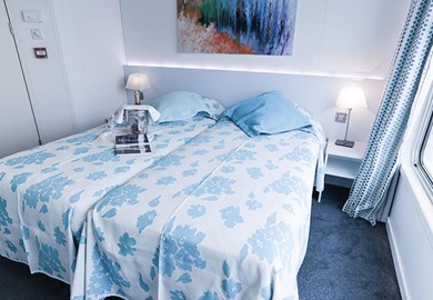 Situated towards the back of the ship on the lower deck, these cabins have porthole windows (which can't be opened), tea & coffee making facilities, a choice of double or twin beds, a flat-screen television, individual climate control, an en-suite bathroom with shower and W.C, a hairdryer, direct dial telephone and in-room safe.