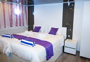 - Cabins feature air-conditioning, a safe, an audio system, a wardrobe, desk, sofa, and porthole window. En-suite bathrooms include a shower and a hairdryer and beds can be configured to twins or a double.