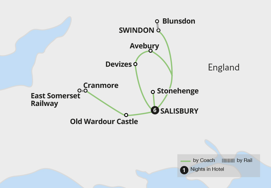 A wonderful and interesting itinerary based around Salisbury. Even a last-minute change of castle visits didn't matter as the substitute was an unusual but worthy replacement. The preferred transport provider - Pewsey Vale Coaches - provided a new 25-plate midibus for our small party group and having the same (excellent) driver for each trip simply made him one of the group. The hotel was excellent, the food and accommodation better than expected. If only there had been a sunset at Stonehenge!