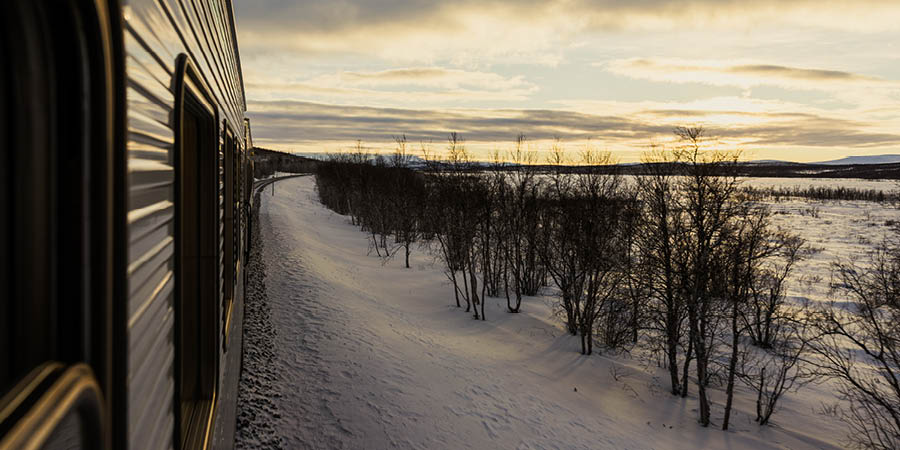 Twenty-seven miles of this route was painstakingly carved out of the mountains in an incredible engineering project, largely undertaken by hand. Our rail journey takes us across the Swedish border, where it continues across barren plateaus and alongside steep mountains to Kiruna, Swedish Lapland's largest city.