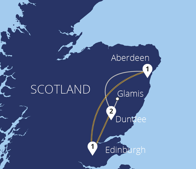 Read moreWe visit three of Scotland's most charismatic cities, experiencing the local culture of Edinburgh, Aberdeen and Dundee. Visit Glamis Castle and journey along the banks of the River Dee aboard the Royal Deeside Railway.