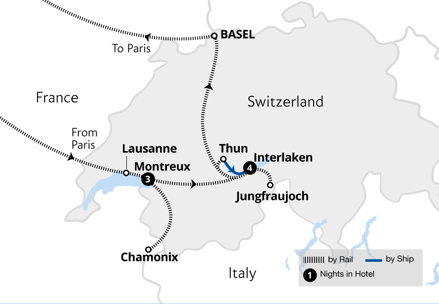 Your seasonal holiday to Switzerland begins today as you arrive at London St Pancras International and meet the Tour Manager and your travel group. Together, we board the Eurostar to France and enjoy a light meal in Eurostar Plus before arriving in Paris. Here, we switch to the high-speed TGV in First Class carriages, travelling to Lausanne in Switzerland.