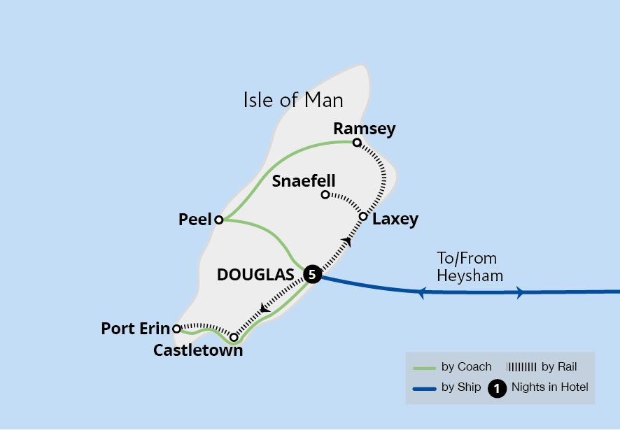 Delve into Celtic legacy as you explore the Isle of Man, travelling on vintage railways, discovering ancient towns and embracing the relaxed lifestyle. Staying in the picturesque capital of Douglas, each day brings something new - from wild landscapes to fascinating history - as you tour famous sights including The Old House of Keys,...