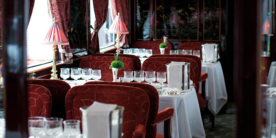 Indulge in the epitome of dining elegance aboard this distinguished train, boasting three luxurious historic dining cars, each a masterpiece in its own right. Haute cuisine lunches and dinners crafted by French chefs, served in opulent surroundings evoke the grandeur of a bygone era. Immerse yourself in the seasonal, fresh flavours of ingredients sourced along the route, anticipating the extravagant table d'hôte menu - a culinary experience which transports you to the golden age of travel, promising a dining affair like no other.